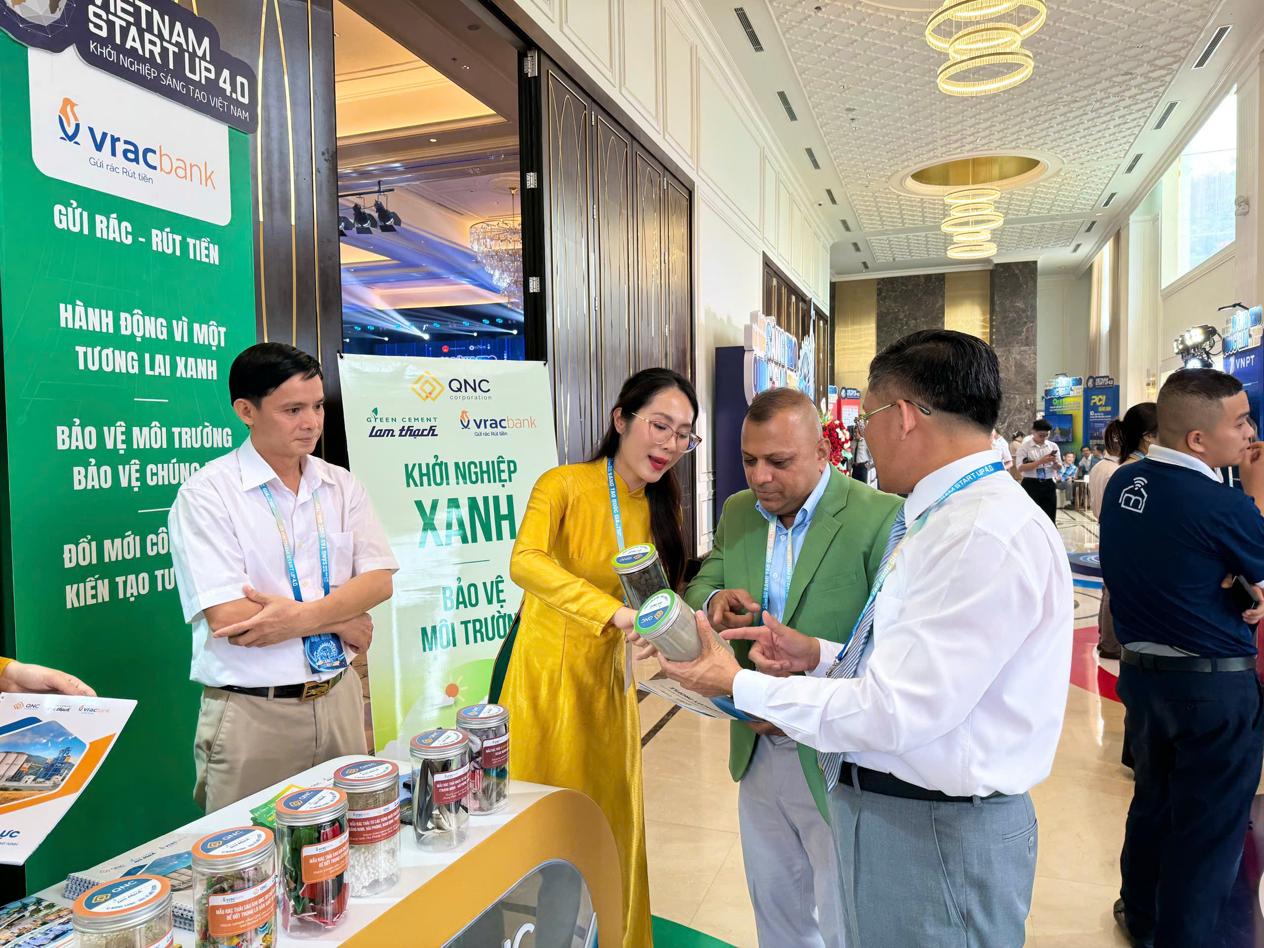Tại gian hàng trưng bày, QNC giới thiệu các mẫu rác