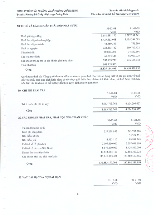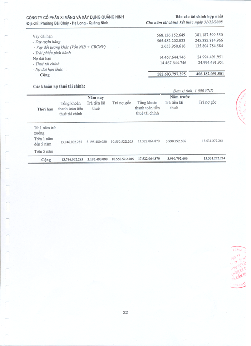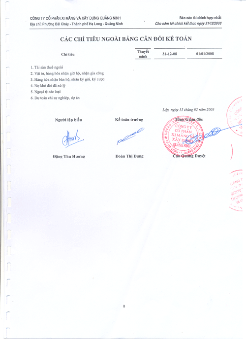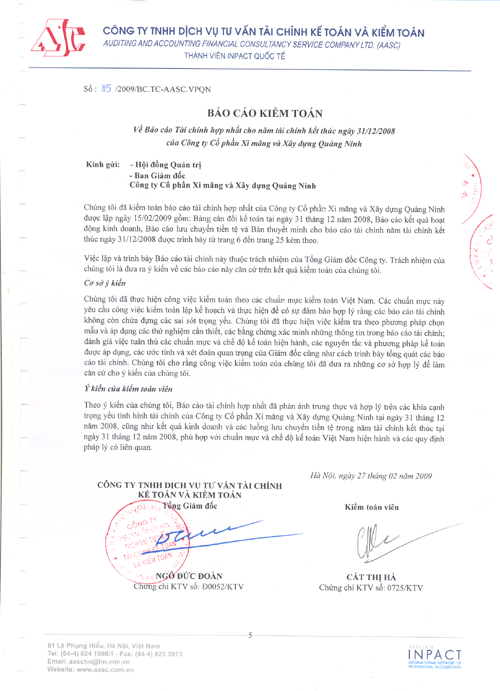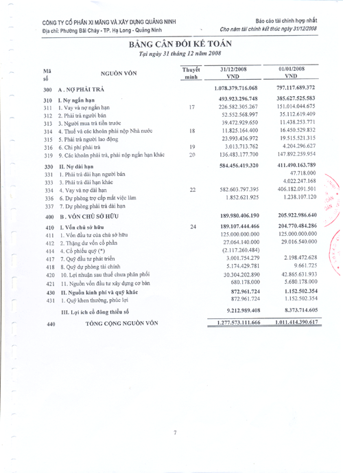Báo Cáo Tài Chính Hợp Nhất Năm 2008 Đã Được Kiểm Toán