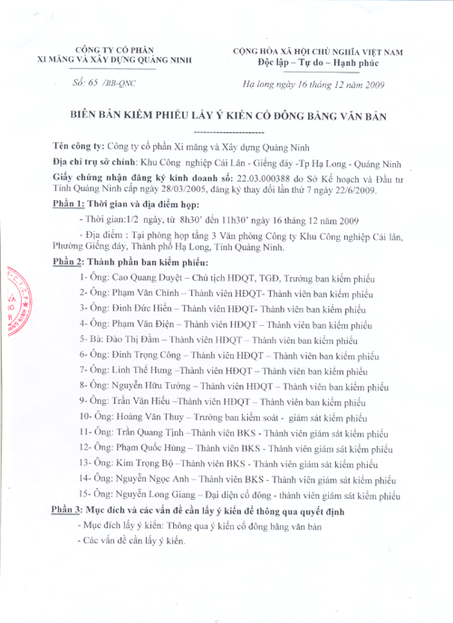 Biên Bản Kiểm Phiếu Lấy Ý Kiến Cổ Đông Bằng Văn Bản
